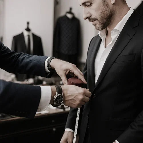 A bespoke garment differs fundamentally from made-to-measure or off-the-rack clothing. Instead of modifying a standard block, we create your pattern from scratch. This means the subtleties of your build and preferences are honored — for example, shoulder slope, balance between chest and back, the way your arms fall in motion, and the height of your waistband. For the wearer, the result is not just better fit but ease: a garment that looks impeccable and feels natural throughout the day.