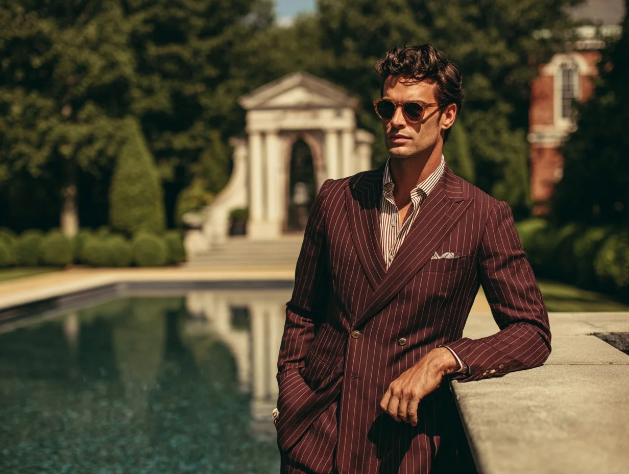 A burgundy pinstripe suit is for the client who understands that color and confidence can reinforce each other. Rich and distinctive, burgundy brings depth and personality to traditional tailoring — while the pinstripe introduces arresting visual discipline. The result is formal, but not stiff; expressive, yet composed.