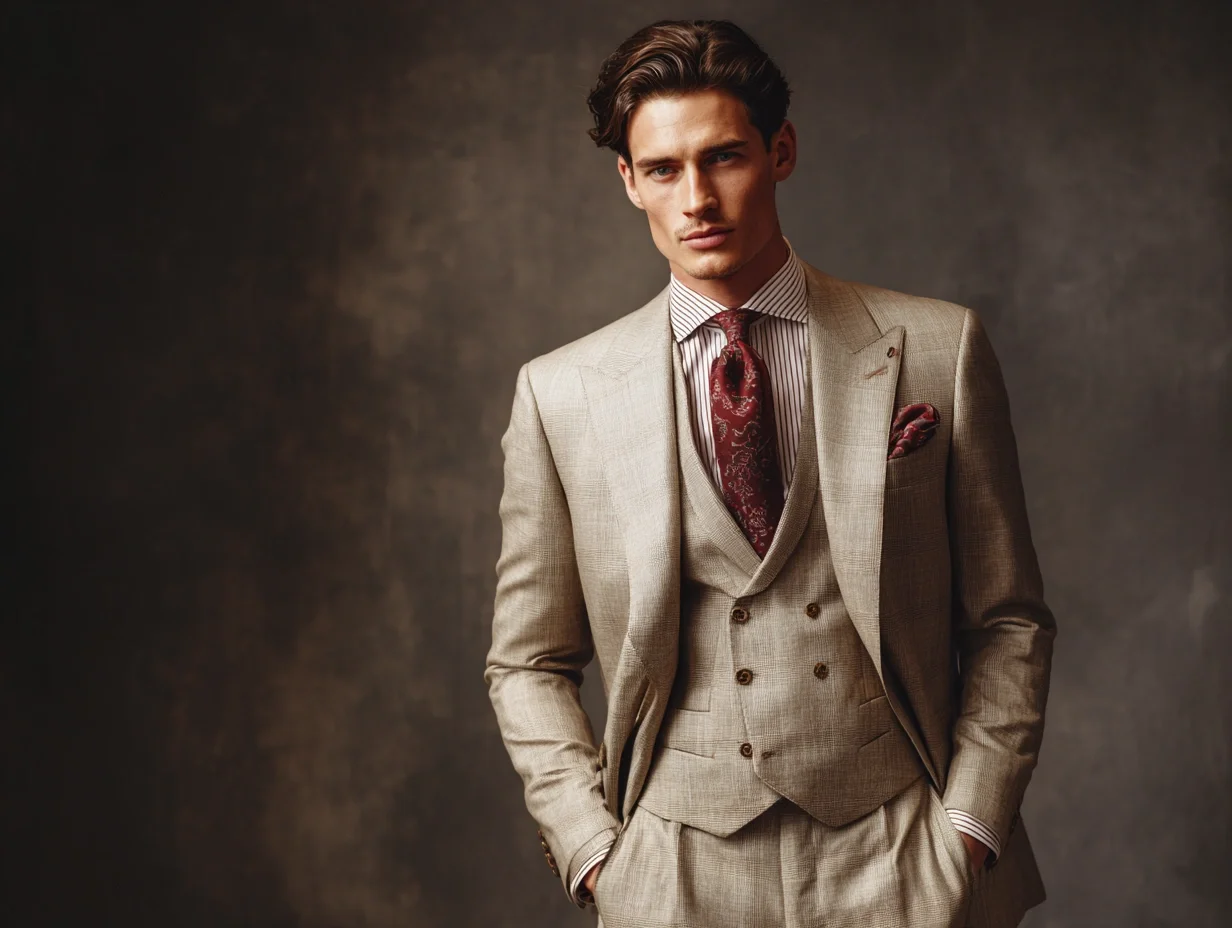 A six-piece suit is a comprehensive tailoring ensemble that typically includes a jacket, trousers, waistcoat, an additional pair of trousers, and sometimes an extra waistcoat or matching overcoat. This gives you options for rotation and variation while keeping a consistent look. The advantage is flexibility: you can wear the full three-piece combination for formal occasions, swap in the second pair of trousers to extend the life of the suit, or adapt the layers to the season.
