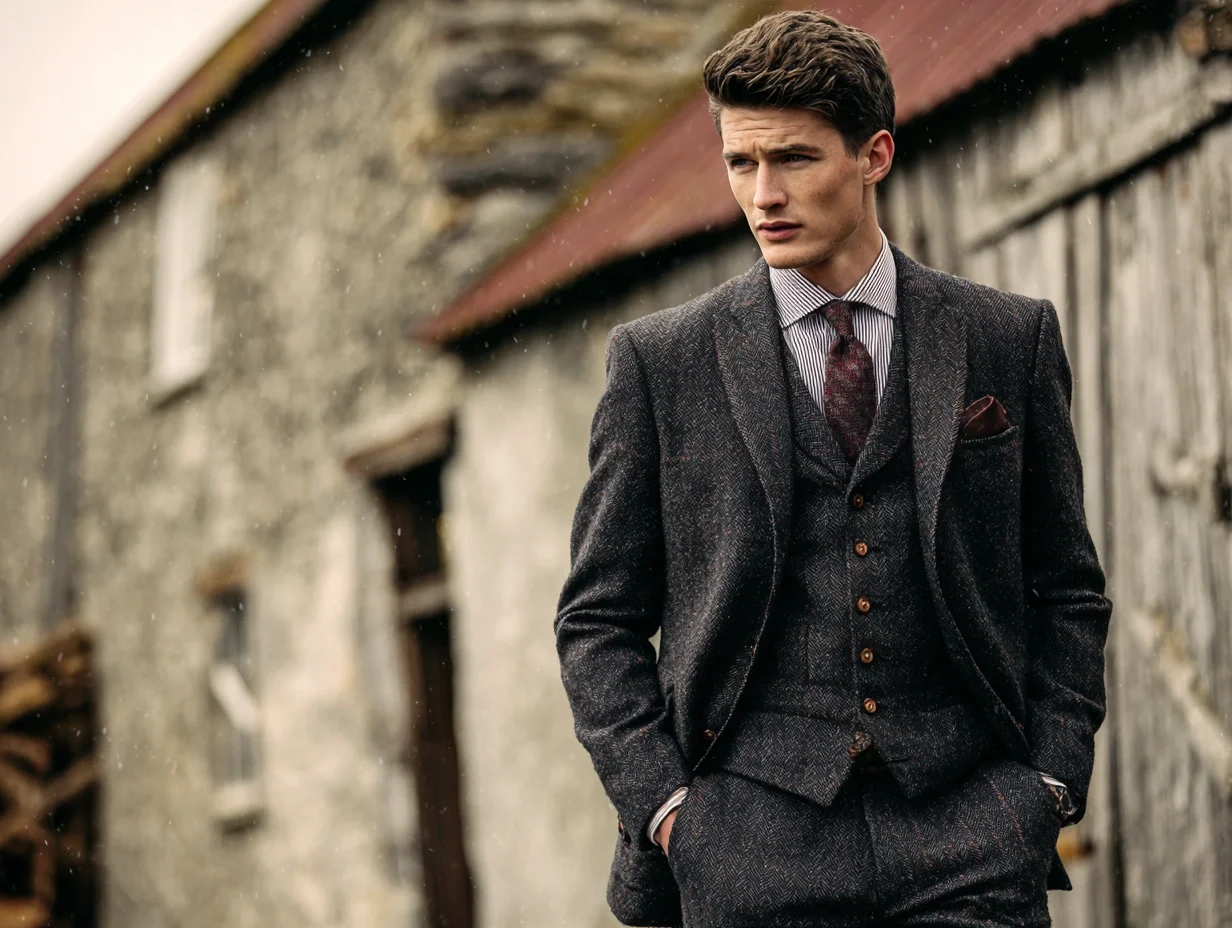 Tweed brings heritage texture to modern tailoring. With its visible weave and natural drape, a tweed three-piece suit is ideal for fall and winter. Herringbone, windowpane, and Donegal flecks are just some of the many choices in wool-rich blends.