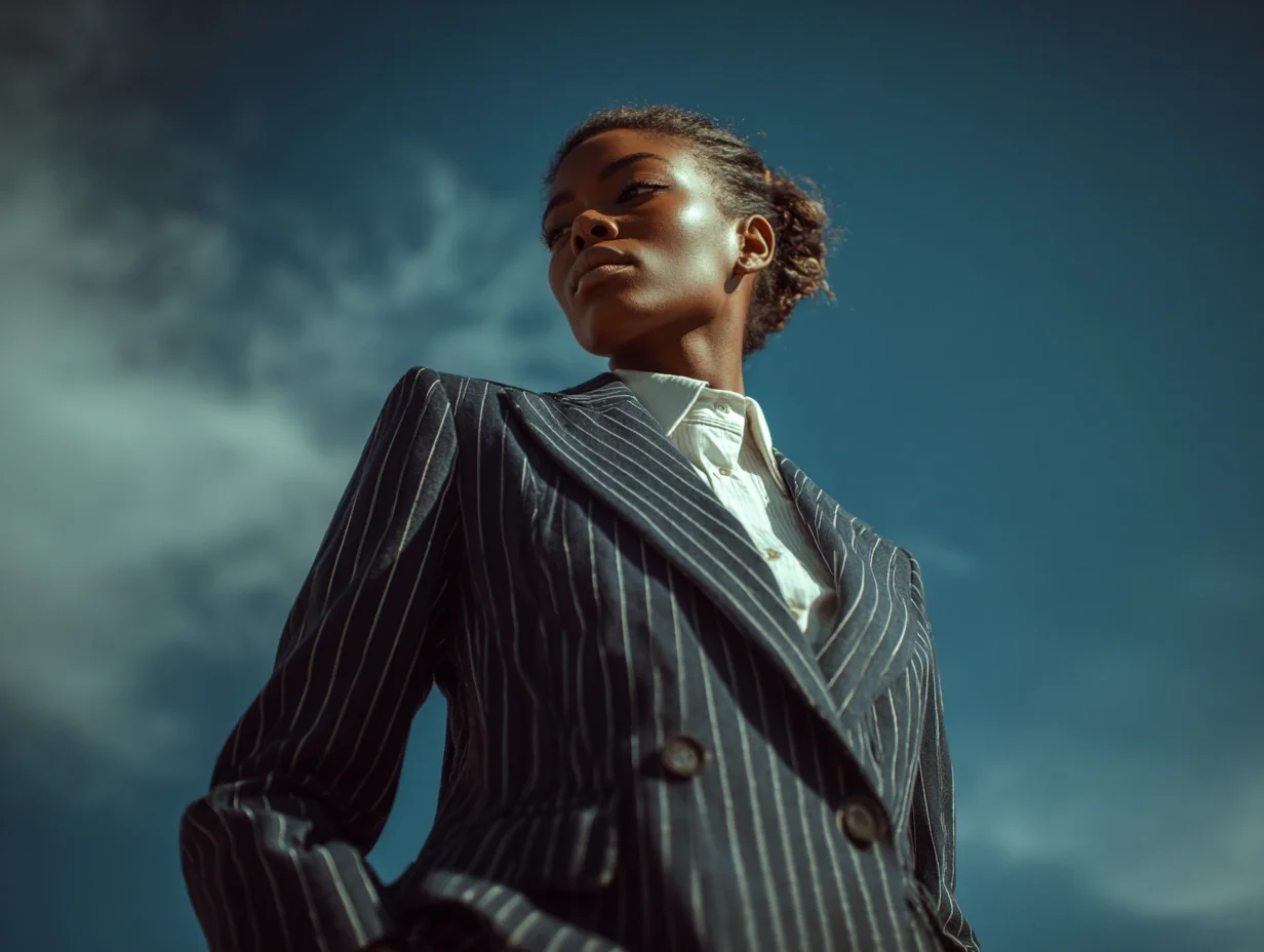 Let us create a women’s navy pinstripe suit that fits precisely — built around your posture, proportions, professional life, and personality.
